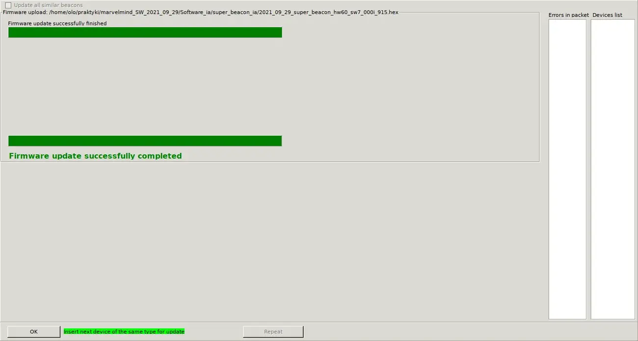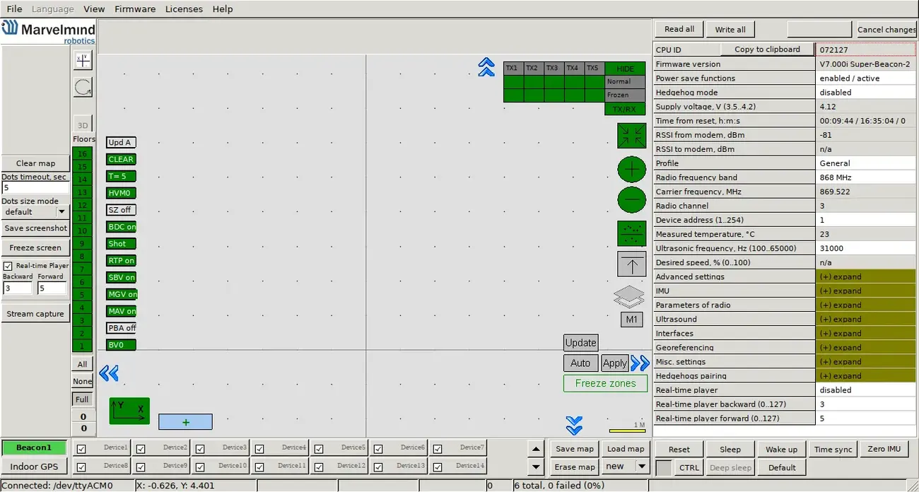 In order to use Marvelmind system for navigation, you need Marvelmind API and their software. In the software, you can find the newest firmware for the beacons and modem, and API is needed to upload it to the device.