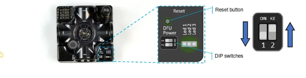 Now, you need to turn on your beacons (or just the currently upgraded ones not to waste the battery in other beacons) by placing the DIP switches like it is shown below: