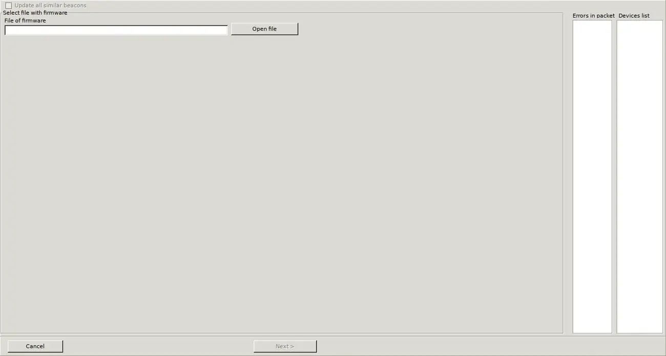 If your beacon is connected, go to Firmware -> Upload firmware. You should see a new window.