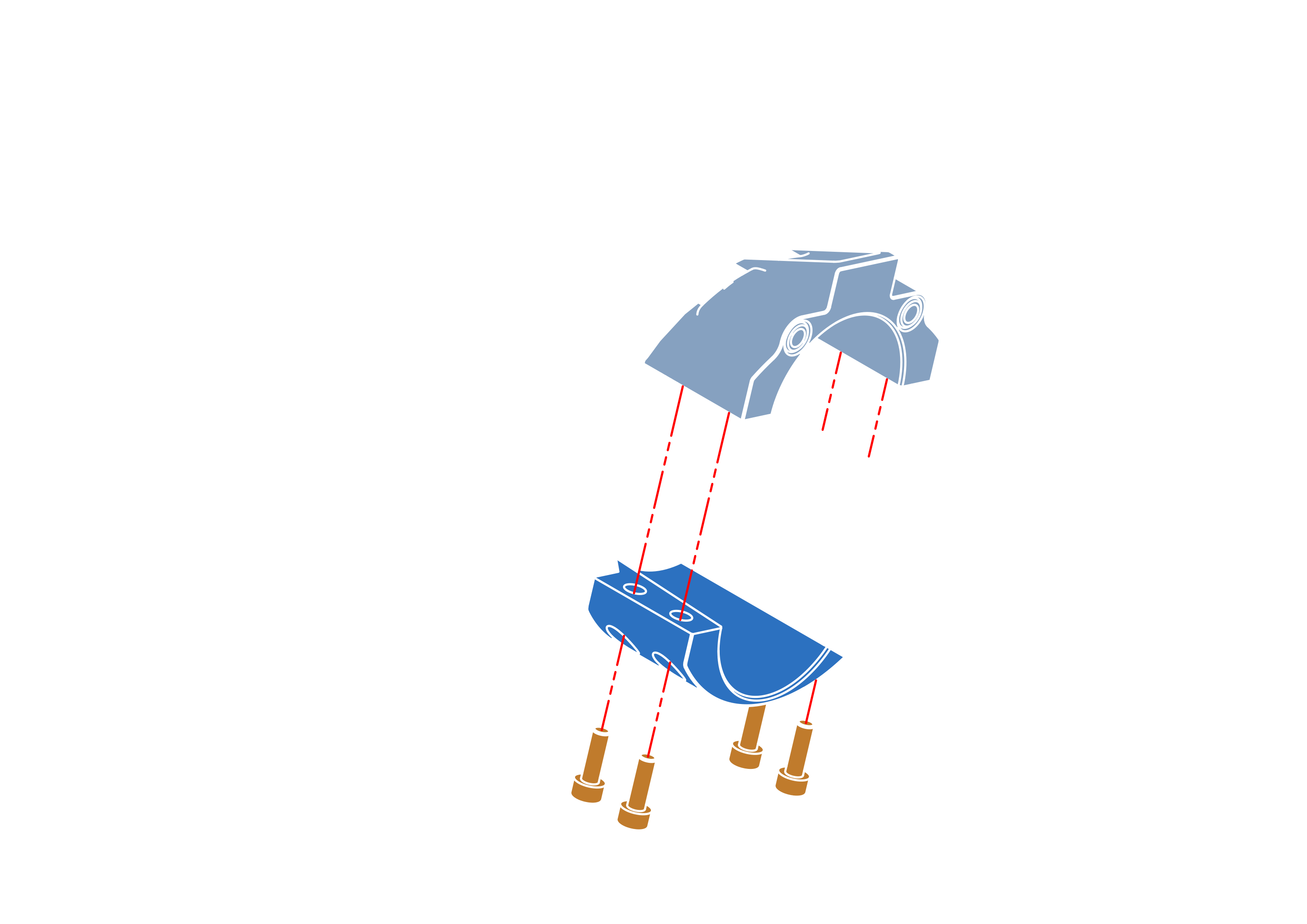 Repeat the process until you have 2 side beams with rocker arms attached.