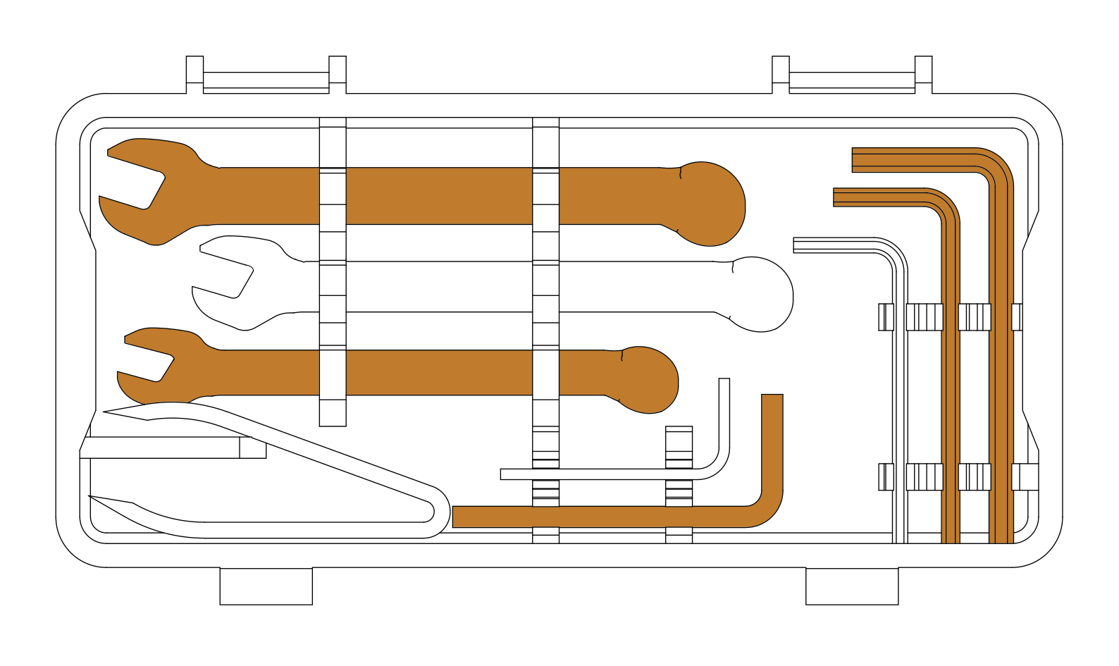 face away from the middle of the beam and are aligned to the ends of it.